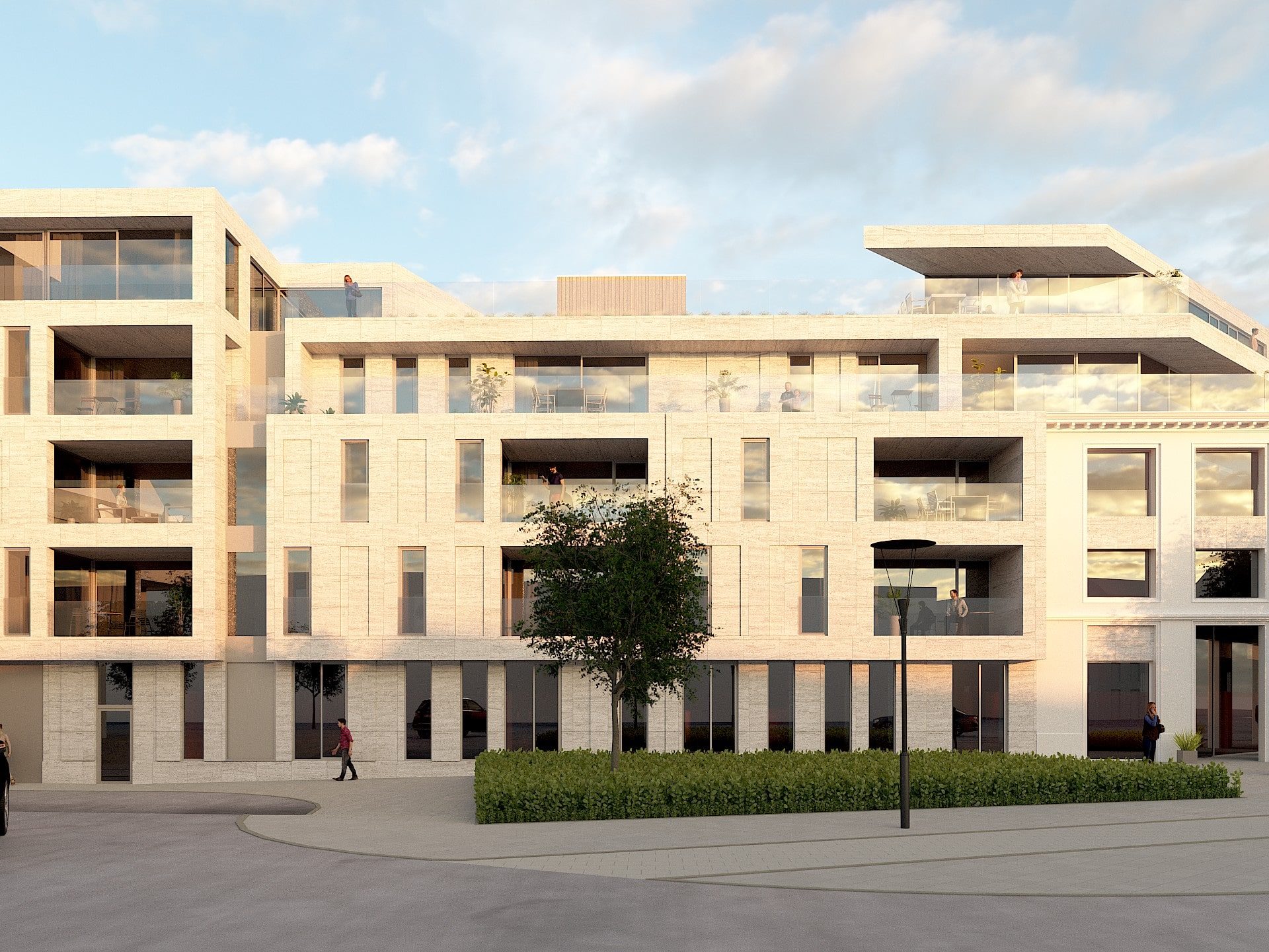 Bouw van een 3 lagen ondergrondse parking, een ING-bankkantoor en 4 luxe appartementen.